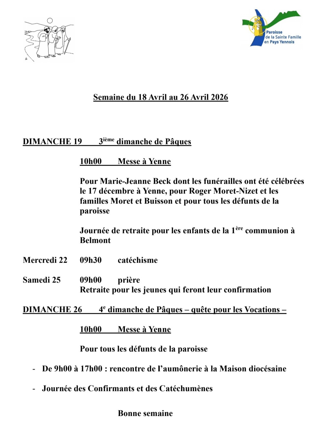 Paroisse catholique de La Balme, Lucey, Jongieux, Billième, St Jean de Chevelu, St Paul sur Yenne, Meyrieux-Trouet, Verthemex, La Chapelle St Martin, Loisieux, Traize et Yenne.