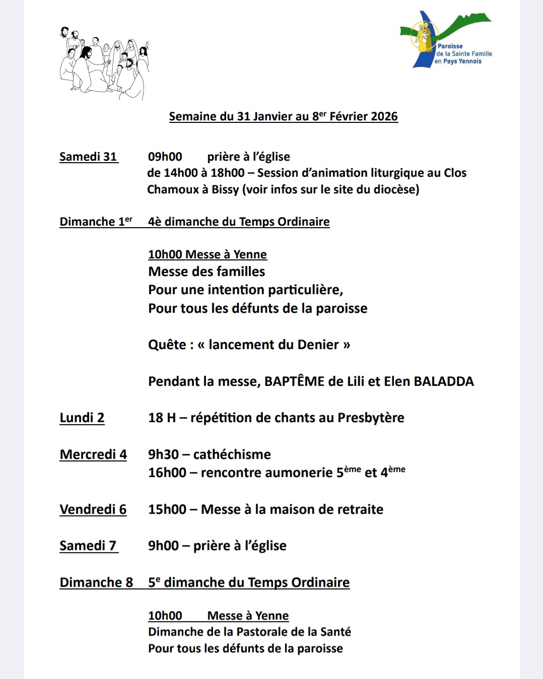 Semaine du 31 janvier au 8 février