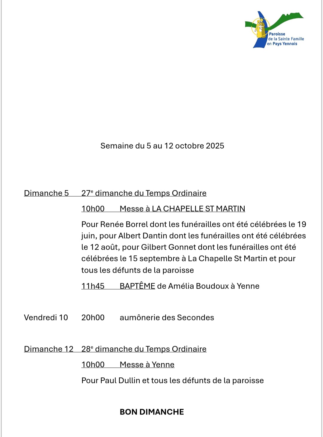 Paroisse catholique de La Balme, Lucey, Jongieux, Billième, St Jean de Chevelu, St Paul sur Yenne, Meyrieux-Trouet, Verthemex, La Chapelle St Martin, Loisieux, Traize et Yenne.