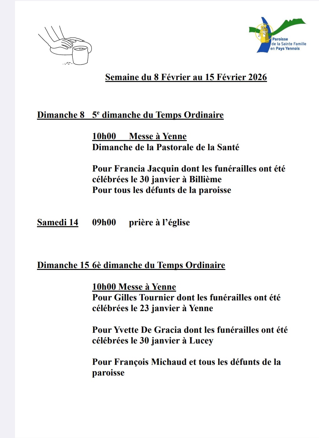 Paroisse catholique de La Balme, Lucey, Jongieux, Billième, St Jean de Chevelu, St Paul sur Yenne, Meyrieux-Trouet, Verthemex, La Chapelle St Martin, Loisieux, Traize et Yenne.